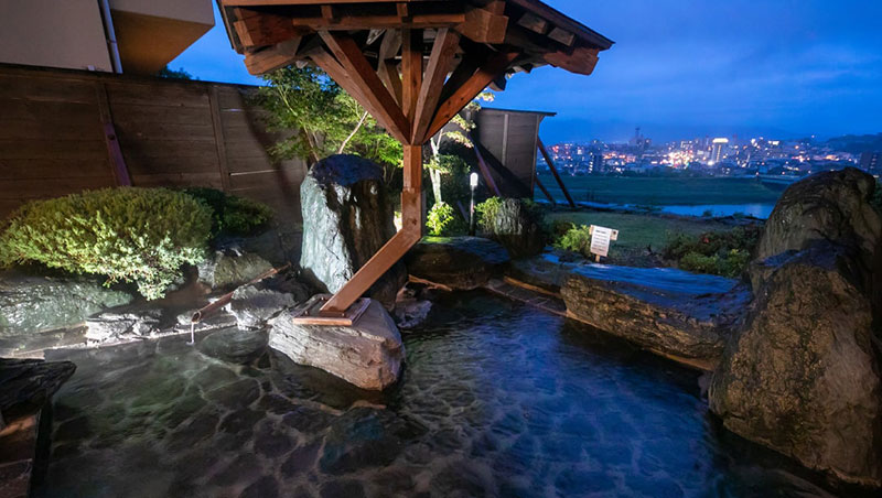 平成24年に全室内湯付き客室へリニューアル。くつろぎの和室と、眺めの良い洋室をご用意しております。各室の内風呂はもちろん、山鹿市街地を一望できる露天風呂と大浴場で、上質な湯を満喫していただけます。季節を感じる心づくしの膳は、郷土の恵みをふんだんに。お食事のみのご利用も可能です。